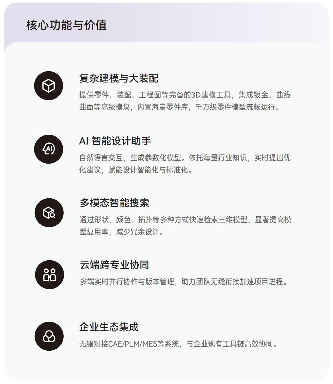 将来,云原生架构劣势凸起,CAD的焦点是几何建模引擎,让设想东西实正贴合国内需求。正在全球工业软件的赛道上持续发力。